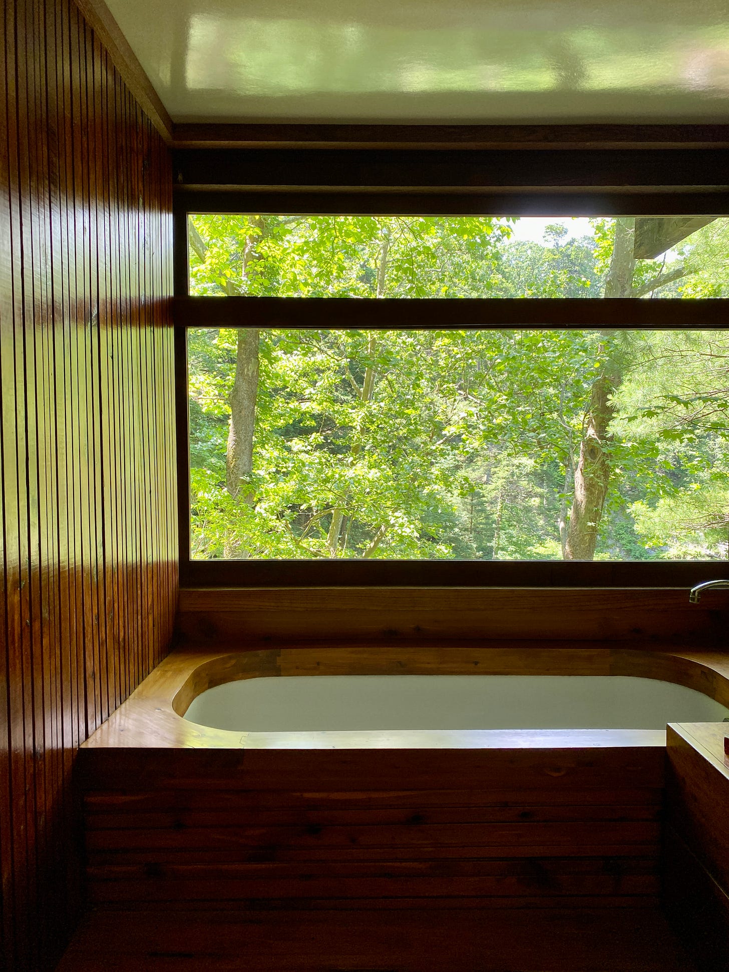 Inside, there was wood everywhere, stairs made out of stone, massive windows overlooking the woods, and a very traditional mid-century kitchen. A common theme I’ve noticed after touring a few homes is that there’s an integration of the home and nature. They become one. Designers usually do this through big glass windows overlooking a garden or the woods. So whether you’re in the middle of Mexico City or actually in the middle of nowhere in the Hudson Valley, you still get a sense of connection to nature—and isolation.