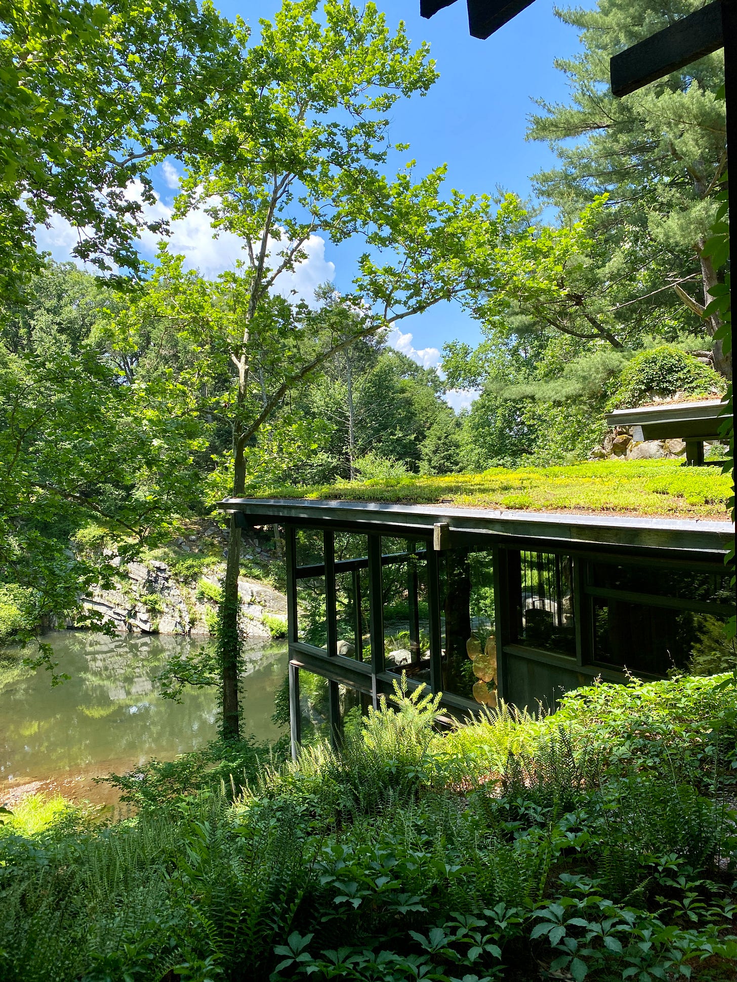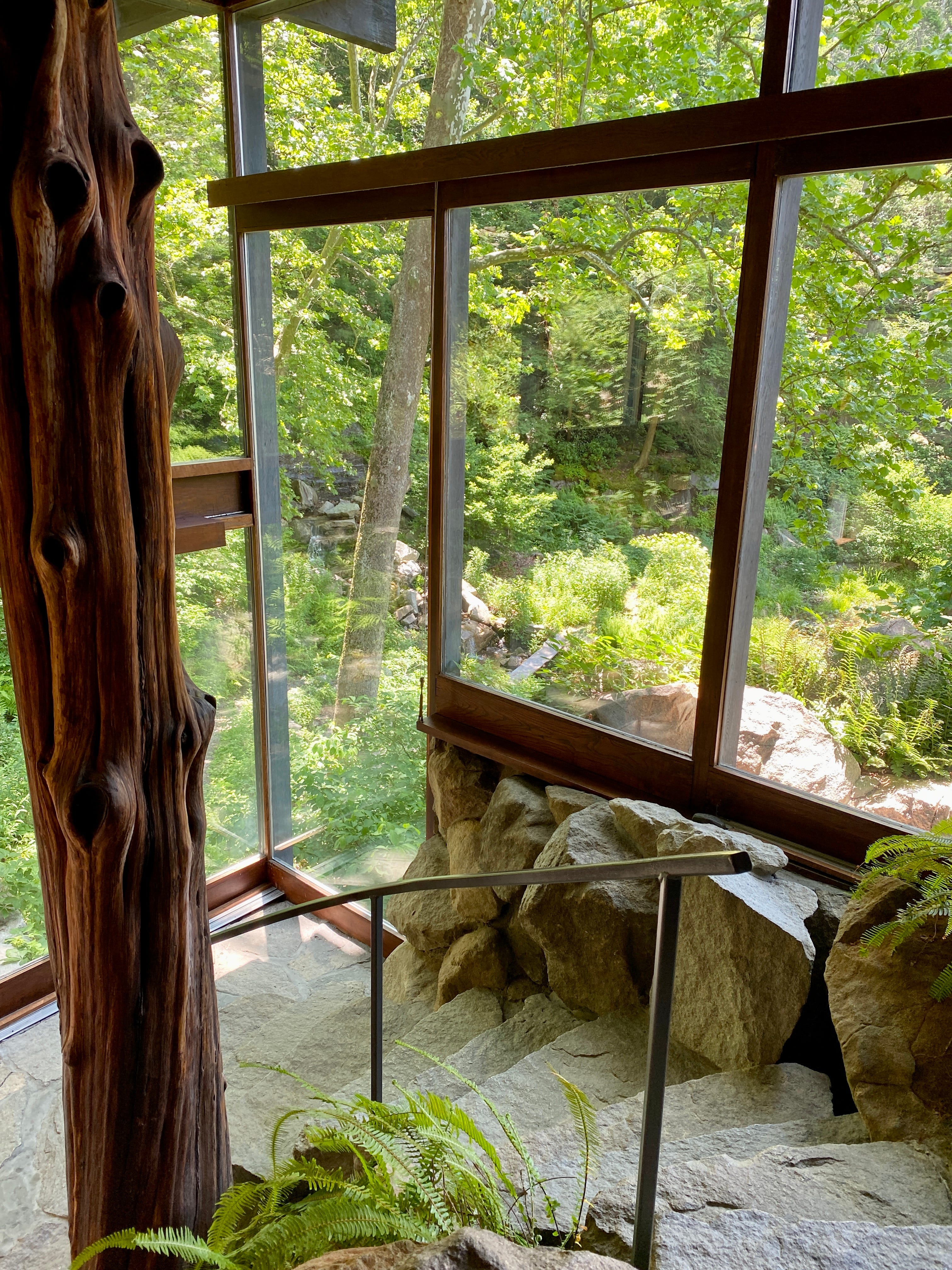 One of my favorite parts about the house is that we had to do a mini hike to get there. Wright made it a requirement that before guests entered his home, they’d have to do a little hike (I might steal this idea one day). I loved the role that nature played in this house. From the outside, the house doesn’t really stand out. Instead, it blends in amongst the trees, which was the intention. And there’s moss everywhere, which was really beautiful, as well as a quarry pool.